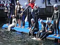 Der startes fra en platform, som er lagt ud i vandet. Svømmerne er delt op i heat, som er grupper af 20-25 svømmere der starter samtidig. Svømmerne i motionsheat'ene hopper ned i vandet og holder fast i platformen inden starten går. Konkurrenceheat'ene, som ligger sidst på dagen, og er forbeholdt de formodet hurtigste svømmere, starter med et spring fra platformen. Alle svømmere får udleveret en badehætte med navn og stregkode på, som de skal have på under svømningen. Alle svømmere i samme heat har samme farve badehætte.