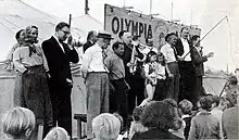 Parade foran cirkus, ukendt årstal, angiveligt 1950'erne eller 1960'erne.