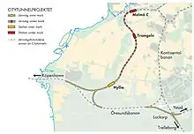 - "Ombyggnad Malmö C: Tidplan". Arkiveret fra originalen 5. juli 2010. Hentet 10. maj 2010.