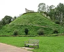 Ruinerne står på en ualmindeligt høj jordbanke, der er omkranset af høje ruiner af en mor og et rundt tårn. Den blev delvist ødelagt og ændret af Great Eastern Railway i 1867, men jernbanesporene er siden blevet fjernet.