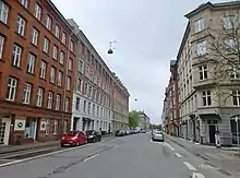 Bygningerne i den østlige ende af gaden er ensartede; stort set ingen butikker og med boliger i mursten i fem etager. I den vestlige ende er bygningerne mere farvemættede og rigt udsmykkede, og der er mange butikker. Arkitekturmæssigt ligner gaden Berlin. Alle bebyggelser i gaden har høj eller middel bevaringsværdi. Bebyggelsen i fem etager har stort set den samme højde på hele strækningen. Husene er overvejende opført i 1890'erne.