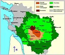 Til cognac bruges hovedsageligt druen ugni blanc, der høstes tidligt og giver en syrlig hvidvin med en alkoholprocent på omkring 8 %. Den destilleres to gange og lagres på fade af eg fra Limousin eller Tronçais.