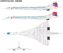 Aérospatiale-BAC Concorde er et fly, der kan flyve med overlydsfart. Det fremhævede en maksimal hastighed over dobbelt lydens hastighed på Mach 2,04, med plads til 92 til 128 passagerer.[1] Flyet fløj første gang i 1969 og blev taget i brug i 1976 og fortsatte kommercielle flyvninger i 27 år indtil 2003. Concorden var én af kun to supersoniske passagerfly; det andet var det sovjetiske Tupolev Tu-144.[2]