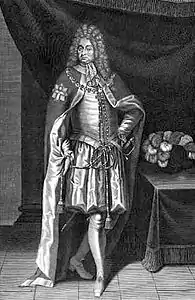 Stik af Hubert Schaten ca. 1693 efter portrætmaleri af Jacques d'Agar forestiller enten Ehrenschild eller Adam Levin von Knuth. Maleri (Miramare ved Svendborg).