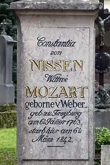 Constanze tilbragte sine sidste år i Salzburg, nu som Constanze, Wittwe von Nissen, früher Wittwe von Mozart ("Constanze, Nissens enke, tidligere Mozarts enke"). Hun ligger begravet i Salzburg ved siden af Georg Nissen.[14]