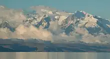 Udsigt over Titicacasøen til bjergene i Cordillera Real