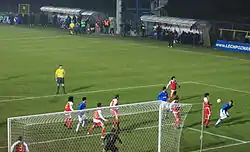 ![]() Craig Thomson i gult dømmer en kamp mellem Lech Poznań og Deportivo La Coruña i UEFA Cup-turneringen i 2008 | |