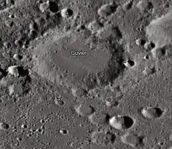 De kratere, som kaldes satellitter, er små kratere beliggende i eller nær hovedkrateret. Deres dannelse er sædvanligvis sket uafhængigt af dette, men de får samme navn som hovedkrateret med tilføjelse af et stort bogstav. På kort over Månen er det en konvention at identificere dem ved at placere dette bogstav på den side af satellitkraterets midte, som ligger nærmest hovedkrateret.[9][10][11] Cuvierkrateret har følgende satellitkratere: