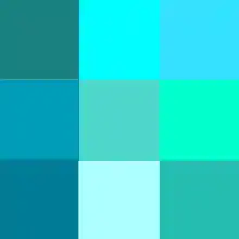 | HSV | (h, s, v) | (180°, 100%, 100%) |