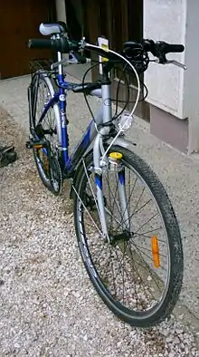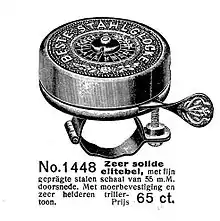 - Hjul-klokke, der sidder ved hjulet, som en (gammeldags) dynamo, og aktiveres med et kabel eller blot en snor.