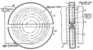 En cyklotron består af et vakuum-kammer med to D-formede elektroder, hvori ladede partikler bliver accelereret af en højfrekvent vekselspænding. Et tværgående magnetfelt holder partiklerne i en spiralbane, idet partiklerne bevæger sig længere og længere ud, jo mere fart, de får på. Accelerationen sker hver gang en partikel bevæger sig fra en elektrode til den anden. En cyklotron kan kun accelerere ladede partikler, såsom protoner, deuteroner, alfapartikler og ioner. Hvis ioner af et bestemt grundstof, f.eks. uran, accelereres i en cyklotron, vil de forskellige isotoper på grund af deres afvigende vægt bevæge sig i forskellige baner og aflejres i adskilte pletter. Således adskilte man U-235, der skulle bruges til den første uran-atombombe fra U-238.