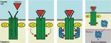 Skitse af hvordan en cytokinreceptor af JAK-type fungerer