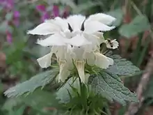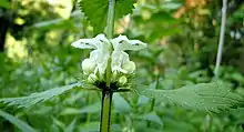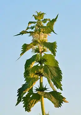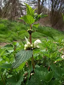 Døvnælde (Lamium album) er en 20-70 cm høj urt, der vokser i vejkanter og ved bebyggelse. Arten har en tendens til at danne større, sluttede bevoksninger.