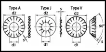 DIN 6798 er en DIN-Standart for en tandskive med Indv- eller Udvendigetænder.