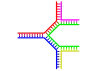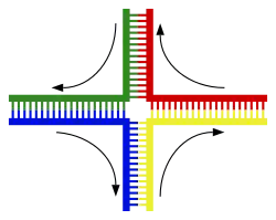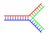 DNA "flosser", når ikke-komplementære regioner eksisterer i enden af en ellers komplementær dobbelt-strenget DNA. Forgrenet DNA kan dog opstå, hvis en tredje streng af DNA introduceres og indeholder tilstødende regioner i stand til at hybridisere med de flossede regioner i den allerede eksisterende dobbelt-streng. Selvom det mest simple eksempel på forgrenet DNA kun involverer tre DNA-strenge, er det også muligt at skabe komplekser med yderligere strenge og flere grene.[68] Forgrenet DNA kan bruges i nanoteknologi til at konstruere geometriske former.