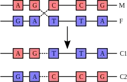Rekombination lader kromosomer udveksle genetisk information og producerer nye kombinationer af gener, som øger naturlig selektions effektivitetet, og kan være vigtigt i den hurtige udvikling af nye proteiner.[130] Genetisk rekombination kan også være involveret i DNA-reparation, særligt i cellens respons på dobbeltstrengsbrud.[131]
