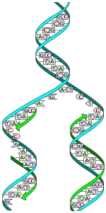Ved replikationen af DNA skilles de to strenge fra hinanden. På denne måde kan hver streng bruges som skabelon til syntese af en ny, komplementær streng. At strengen er komplementær betyder, at DNA-baserne adenin (A), cytosin (C), guanin (G) og thymin (T) matcher baserne på den modstående streng (i DNA, som ikke er muteret, danner A altid basepar med T, og C danner altid basepar med G). Antag at der forefindes to strenge, henholdsvis S1 og S2, som er hinandens komplementære strenge. I følgende forklaring følges først den ene streng, S1, som nu skal agere skabelon for syntesen af en komplementær streng og dermed nyt DNA.