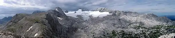 ![]() Dachstein set fra nordvest med Gosaugletsjeren og Gosausee  | |