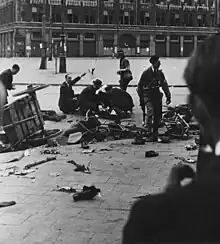 7. maj 1945, to dage efter Nazi-Tysklands kapitulation, ventede tusindvis af hollændere på de canadiske troppers ankomst til Dam-pladsen. I Grote-klubben på hjørnet af Kalverstraat og Paleisstraat så medlemmer af den tyske Kriegsmarine til, mens den glade menneskemængde under deres balkon voksede sig større og større. Tyskerne placerede et maskingevær på balkonen og begyndte at skyde mod de forsamlede. Motivet bag angrebet er endnu ukendt, men tyskerne var fulde og sandsynligvis vrede over, at det hollandske politi havde forbrudt sig mod en aftale om ikke at arrestere tyske soldater.[2]