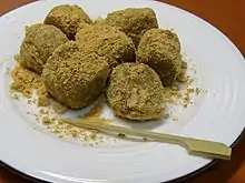- Goma: Dango med sesamkorn. Den smager såvel sødt som salt.