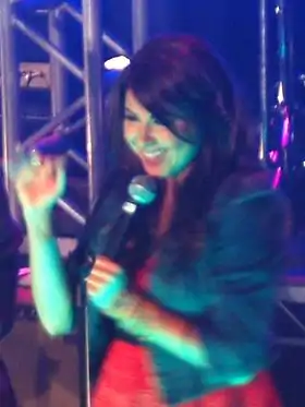 ![]() Daniella Monet sammen med Victorious-staben i en koncert performance i Avalon Hollywood. | |