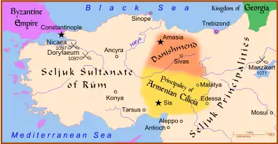 Danishmend var et tyrkisk dynasti som herskede i det nord-centrale og østlige Anatolien i det 11. og 12. århundrede. Det var oprindelig centreret omkring Sivas, Tokat og Niksar, men strakte sig så langt vest på som Ankara og Kastamonu i en periode og så langt mod syd som Malatya, som de erobrede i 1103. Tidligt i det 12. århundrede var danishmenderne rivaler af seldsjukkenes Rum-sultanat, som kontrollerede en stor del af områderne omkring danishmendernes landområder. De havde også omfattende kampe med korsfarerne.
