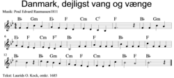 1. Gunnar Jensen; Jesper Moesbøl. "Danmark, dejligst vang og vænge". hojskolesangbogen.dk.