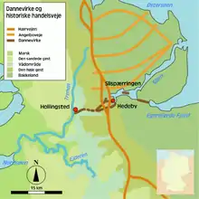 - Halvkredsvolden omkring vikingebopladsen Hedeby, Nordens største handelscenter i vikingetiden