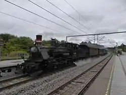 ![]() Vestsjællands Veterantog, en del af Dansk Jernbane-Klub, under en tur Rundt om husene i København.  | |