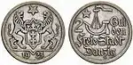 | 1 gylden | 23.5 mm | 5.0 g | "Freie Stadt Danzig", kogge |