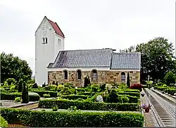 Kirken består af skib og kor, tårn mod vest og våbenhus mod nord. Skib og kor er med bjælkeloft, og er fra romansk tid, bygget af granitkvadre på sokkel med skråkant. Nordmuren er bevaret urørt med dør og flere vinduer; det øvrige er omsat. I skibets sydmur er indsat en kvader med en stående løve. Det senere tilføjede tårn er af kvadrer fra vestgavlen og munkesten i munkeforbandt, Våbenhuset af af samme materiale og fra samme tid. Tårnrummet, der har rundbue ind til skibet, er hvælvet. Altertavlen og prædikestol fra renæssancestil; Romansk døbefont af granit med løvefigurer og planteslyngninger.
