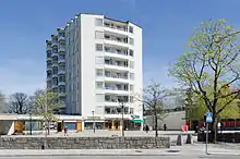 - Boligbyggeri og forretningscentrum, i Hökarängen, Stockholm, fra 1944-1951.