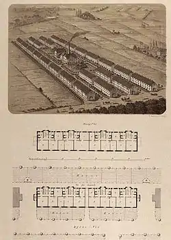Toiletterne var anbragt to og to i små bygninger ved husenes gavle, hvilket gav fire klosetter til 16 lejligheder. Hvert hus fik tildelt en lille havelod. På en central plads midt i byggeriet anlagdes et stort fælleshus, kedelrum og vaskeri samt forskellige butikker, hvor beboerne kunne købe daglige fornødenheder. Desuden fandtes der et børneasyl. I 1880 blev en kirke – Classerkirken – tilføjet til bebyggelsen. Den blev nedrevet i 1911 og erstattet af Godthaabskirken.