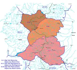 De danner grænsen mellem Frankrig (Hautes-Alpes og Savoie) og Italien (Piemonte). Maddalena-passet adskiller den fra de De maritime Alper.