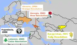 Nogle af disse bevægelser har haft en vis succes, eksempelvis; Forbundsrepublikken Jugoslaviens bulldozerrevolution (2000), Georgiens rosenrevolution (2003), Ukraines orange revolution (2004) og Kirgisistans tulipanrevolution (2005). I de fleste, men ikke alle, tilfælde blev et omstridt valgresultat efterfulgt af massive gadeprotester og krav om et retfærdigt valg/nyvalg. De førte til tilbagetræden eller væltning af de eksisterende regeringer, der af deres modstandere blev betragtet som autoritære. Nogle begivenheder er blevet kaldt "farverevolutioner", men adskiller sig fra ovenstående tilfælde i visse grundlæggende karakteristika, eksempelvis Libanons cederrevolution (2005) og Kuwaits blå revolution (2005).