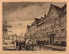 Oprindeligt lå her et værtshus, men da de senere blev fjernet, solgte kong Frederik 3. nabogrunden for enden af Børsen til sin egen rentemester, Henrik Müller, på betingelse af, at Müller ville opføre nogle ordentlige beboelses- og pakhuse på stedet. Resultatet blev husrækken De seks Søstre. Det var tre sammenbyggede gavlhuse med to boliger i hver, hvor forhuset lå ud mod Slotsholmskanalen langs Børsgade og det bagved indrettede pakhus havde front mod Børsgraven, der senere blev tildækket. Husene var store, fornemme borgerhuse i en hollandsk renæssancestil, hvor der først og fremmest boede rige købmandsfamilier. I starten af 1800-tallet var en kendt beboer i husrækken, Børsgade 66, Søren Kierkegaards forlovede, Regine Olsen, hvis fader, Terkel Olsen fra Finansdepartementet boede her.