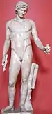 | Apollon | Apollo (eller Phoebus)[14][15][16] | ![]() | Gud af lys, viden, musik, poesi, profeti og bueskydning. Søn af Zeus og Leto. Symboler er solen, lyre, bue og pil, ravn, delfin, ulv, svane og mus. Tvillingebror til Artemis. | Anden |