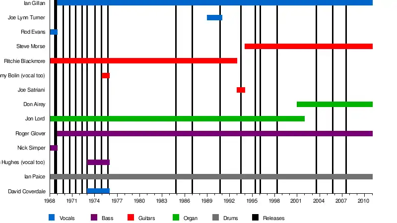 Ritchie Blackmore Jon Lord David Coverdale Glenn Hughes Rod Evans Tommy Bolin Joe Lynn Turner Joe Satriani Nick Simper |