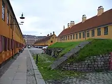 Delfingade ved Øster Voldgade med beskyttelsesrummet.