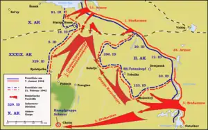 Den øverstkommanderende for Armégruppe Nord, generalfeltmarskal Ritter von Leeb bad om tilladelse til at tage fronten tilbage til Lovatfloden, men fik afslag fra Hitler. Demjanskområdet skulle holdes for enhver pris, også selv om forbindelsen til resten af 16. Armé gik tabt. Derefter tog Ritter von Leeb sin afsked og blev afløst af generaloberst Georg von Küchler. Det sovjetiske angreb blev i slutningen af januar fulgt op af 1. Gardeskyttearmé (brigadegeneral A.S. Grjasnov), som fra Staraja Russa svingede mod sydøst i ryggen på X. og II. Armékorps.