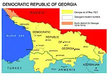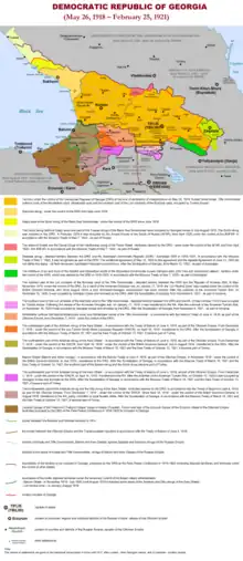 Landet blev uafhængig efter opløsningen af den Transkaukasiske føderation, og blev regereret af det socialdemokratiske mensjevik-partiet. Den unge stat var ude af stand til at stå imod invasionen af den Røde Hær under den sovjetisk-georgiske krig og blev tvangsindlemmet i Sovjetunionen som den Georgiske socialistiske sovjetrepublik den 25. februar 1921.