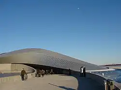 Anlægget er tegnet af det danske arkitektfirma 3XN. Arkitekturen er inspireret af en hvirvelstrøm og er derfor et markant vartegn set fra luften. Bygningen er omgivet af høje spejlbassiner og beklædt med små rombeformede aluminiumsplader, der ligner fiskeskæl. Husets flydende geometri er muliggjort af en digitaliseret design- og byggeproces.[25]