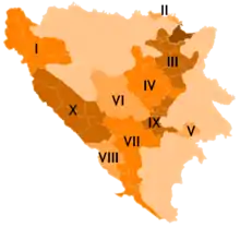 | VIII. | Vesthercegovina Kanton | Zapadnohercegovački kanton | Zapadnohercegovačka županija | Široki Brijeg | 1.362 | |