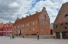 Den takkede gavl for enden af fængselsgården er det gamle rådhus sidefløj