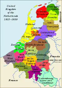 Allerede inden slaget ved Waterloo i 1815, overbeviste Storbritannien, som var interesseret i en ligevægt i styrkeforholdet mellem de europæiske magter, de andre stormagter Østrig, Preussen og Rusland om, at det tidligere Holland og de østrigske nederlande (inkl. Liège og Luxembourg) skulle slås sammen til et kongerige, som kunne være en stødpudestat mod Frankrig. Hermed erstattede briterne samtidig hollænderne for tabet af Kapkolonien.