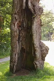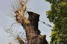 Til sidst var træet kun en ruin med enkelte store grene på en hul skal. Træet var støttet af kraftige barduner for at sikre det mod at vælte, og kommunen havde fjernet alle større grene af samme grund.