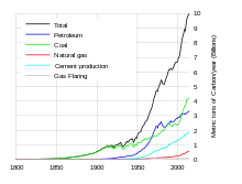 Som et ikke uvæsenligt kuriosum kan nævnes, at den menneskelige krop via vejrtrækningen også bidrager til CO2-udledning, med gennemsnitligt ca. 0,9 kg CO2 pr individ pr dag.[24] Med en befolkning i april 2019 anslået til 7,7 mia. mennesker svarer dette til 6,9 mio. tons CO2 om dagen.[25]