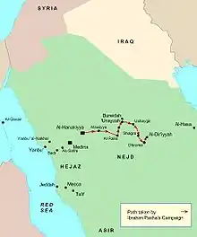 Med stigende indflydelse fra wahhabitterne blev osmannisk styre i Hijaz, Irak og Syrien truet. Grundet bekymringer for spredning opfordrede osmannerne Egypten til at gribe ind, og Muhammed Ali begyndte at samle styrker allerede i 1809. Ali samlede lejesoldater fra Det osmanniske rige og rekrutter med løfte om at befri de hellige byer i Arabien fra wahhabitterne. Hæren kom til at bestå af blandt andet albanere, tyrkere, egyptere og til og med europæiske lejesoldater som havde kæmpet under Napoleon, og Ali sendte og med artillerienheder forladt af franskmændene i 1799. Som etnisk albaner var Muhammed en dygtig leder af den multietniske styrke. Lokket af Hijaz' rigdom og hæder og ære i den muslimske verden, som han ville bruge til at sikre Egyptens selvstændighed fra osmannerne, sendte Ali sin hærstyrke til Den arabiske halvø i 1811.[3]