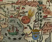 Forsvaret af Vyborg blev ledet af slotsherren Knut Posse. De moskovitiske angribere var lige ved at erobre byen. Ifølge overleveringen havde Knut Posse forårsaget eksplosionen med en slags eksploderende blanding. Andre historier hævder, at fænomenet var en figur vist mod himlen og afbildede for eksempel det X-formede Sankt Andreas kors.