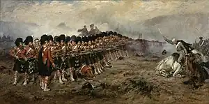 93. Sutherland Highlanders og to andre Highland regimenter stoppede et stormangreb fra russisk kavaleri, der truede den britiske forsyningsbase ved havnen Balaklava. Den britiske styrke var under kommando af Sir Colin Campbell.